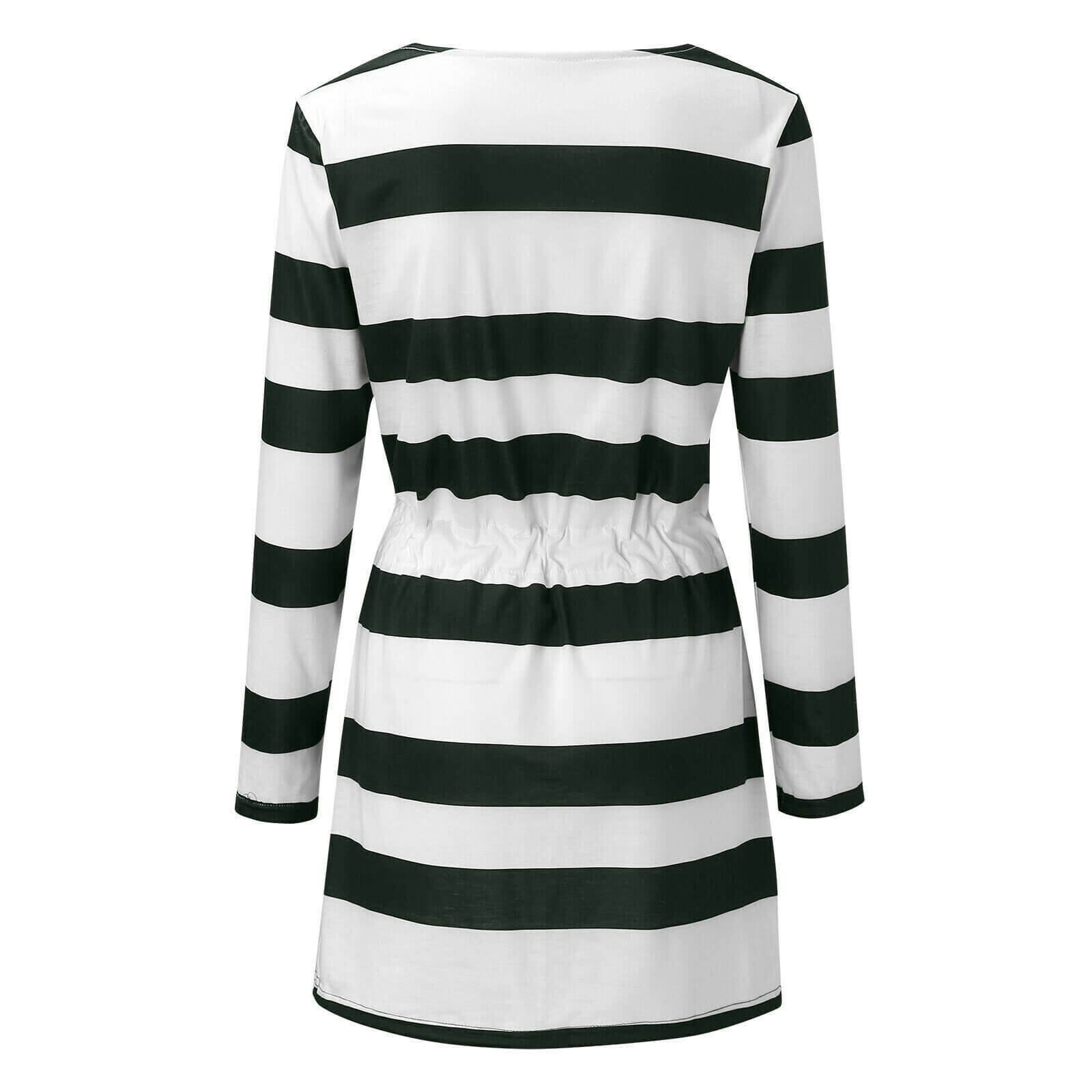 Style: Casual; Color: as the picture show; Detail: With Pocket; Waist:Drawstring; Pattern:Printed Stripes; Collar:V-Neck; Sleeve:Long sleeves; Season: All Season; Material:Cotton.